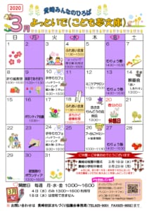 ☆2020年3月開館カレンダー=貴崎みんなの広場”よっといで”☆ 投稿日 2020年1月31日 著者 kisaki カテゴリー 未分類 2020年3月のよっといで(こども夢文庫)カレンダーを アップいたします。