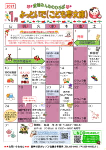 2021年1月のよっといで(こども夢文庫)カレンダーを