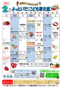 少し早いのですが、2021年2月のよっといで(こども夢文庫)カレンダーを