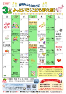 2021年3月のよっといで(こども夢文庫)カレンダーが完成いたしましたので