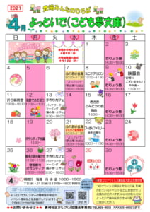 2021年4月のよっといで(こども夢文庫)カレンダーが完成いたしましたので