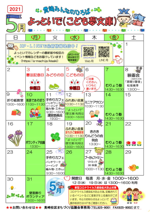 2021年5月のよっといで(こども夢文庫)カレンダーが完成いたしましたので