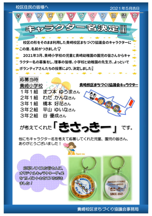貴崎校区キャラクター名決定のお知らせ