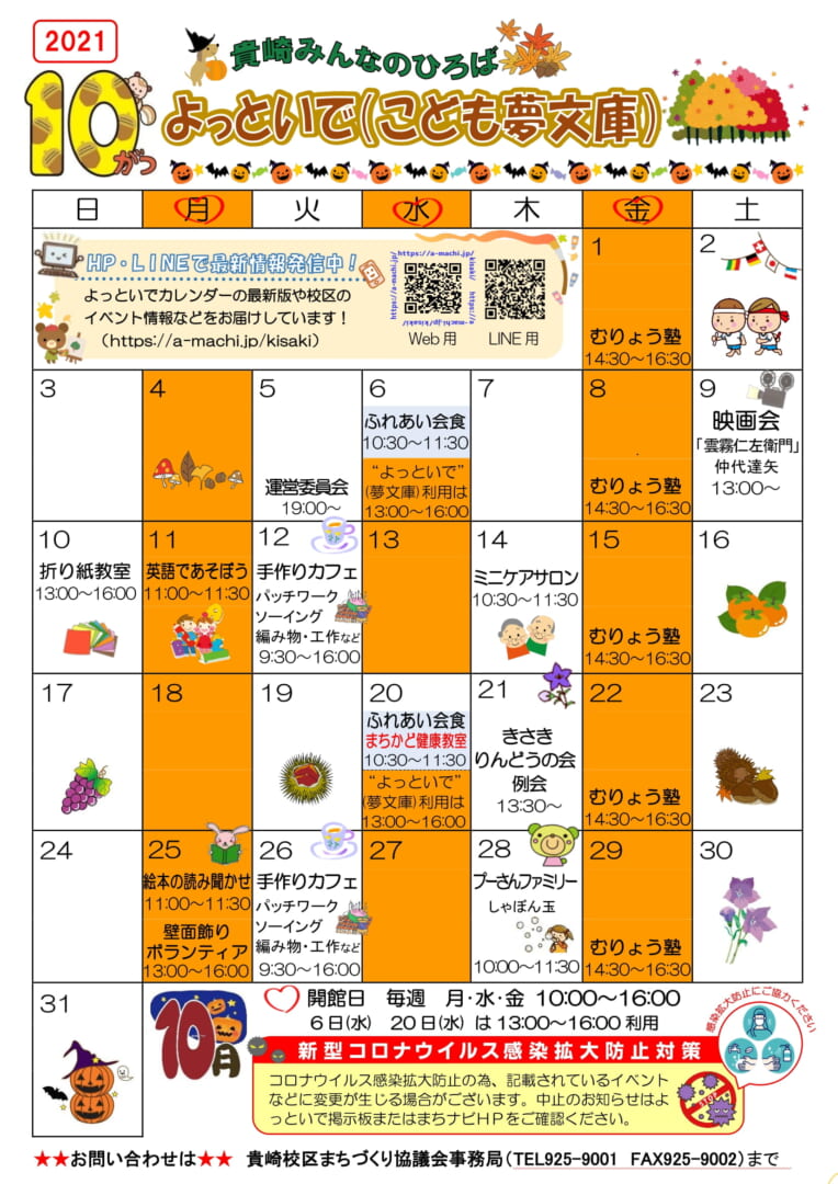 2021年10月のよっといで(こども夢文庫)カレンダーが完成いたしましたのでアップいたします。