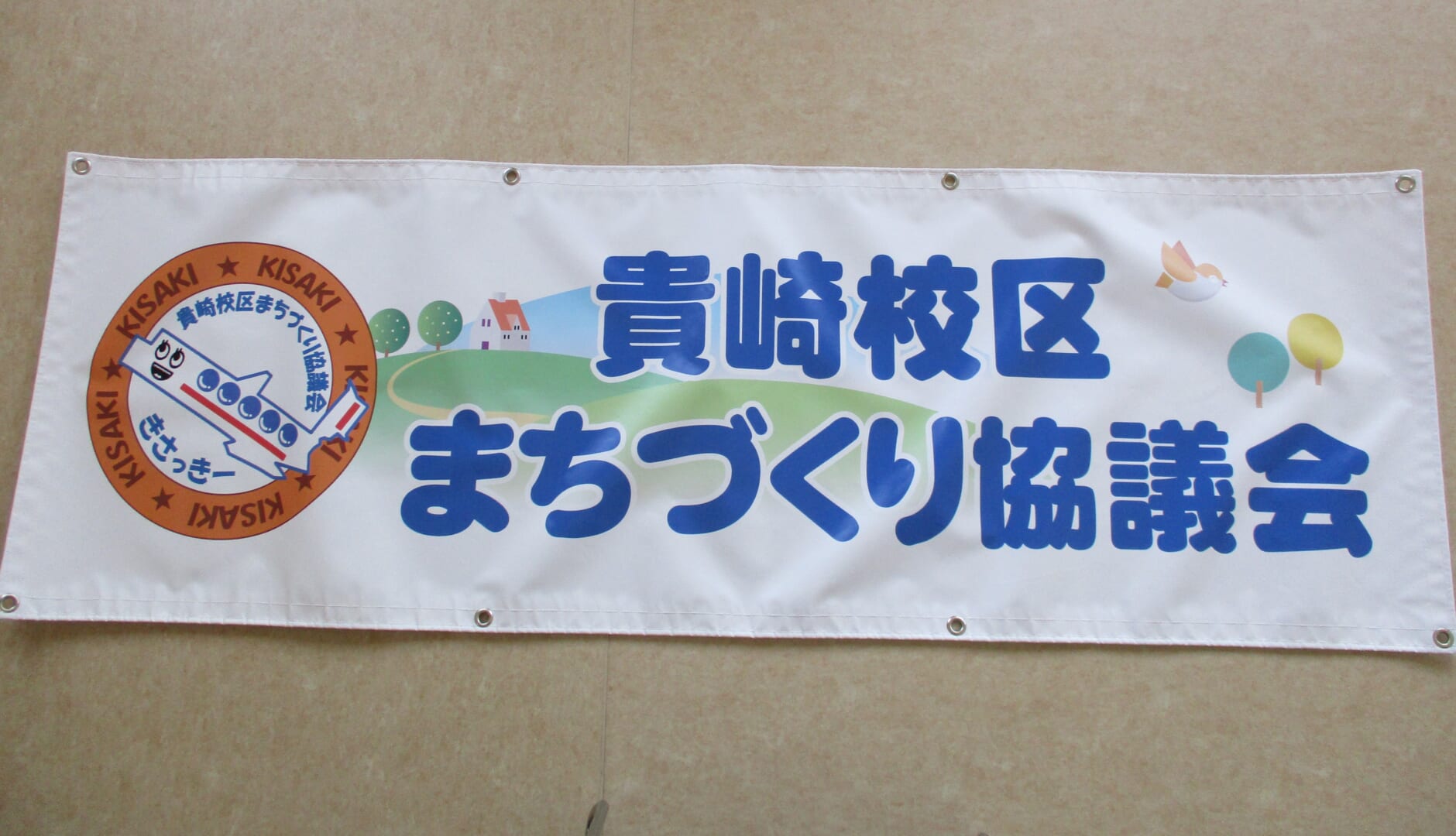 また、令和3年度の予算にて制作購入いたしました貴崎校区の横断幕も、理事の皆様にお披露目いたしました。とても立派な出来となりましたので、校区の皆様に見ていただける日が楽しみです。