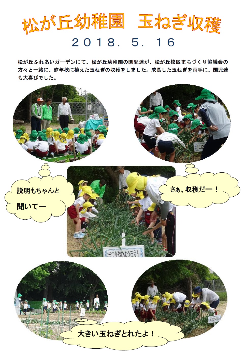 ガーデンにて 松が丘幼稚園 タマネギ収穫