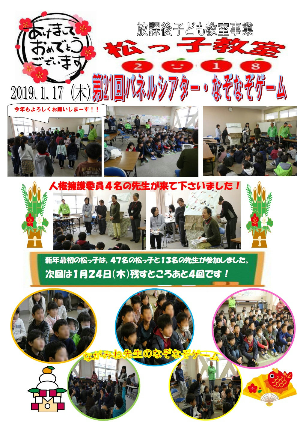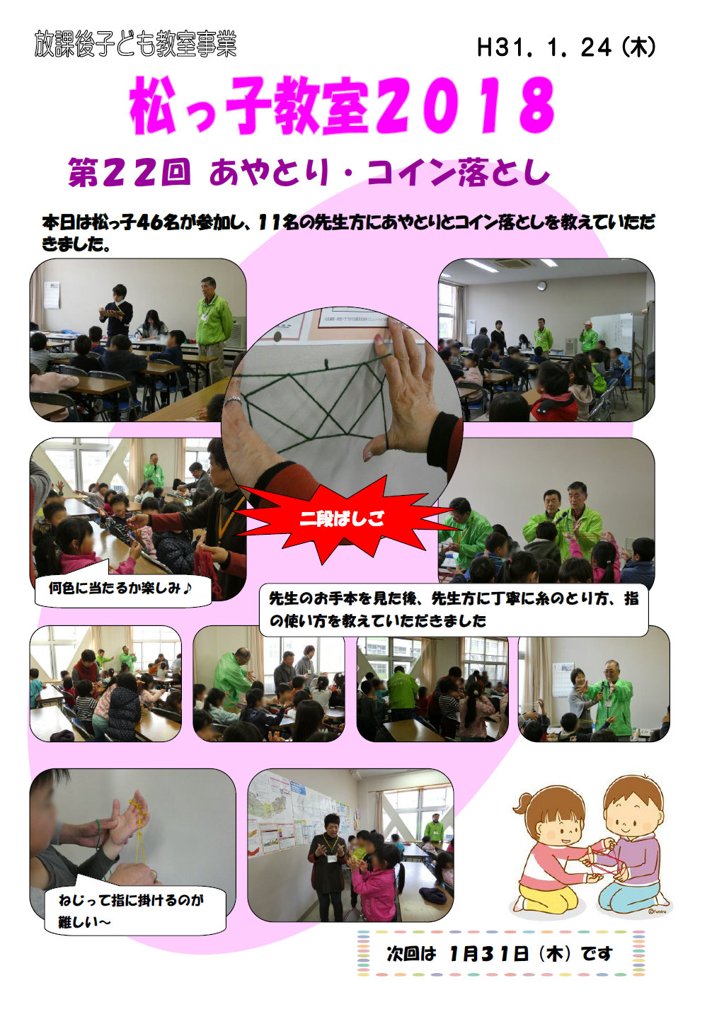 松っ子教室2018 第21回から第23回 投稿日 2019年2月9日 更新日 2019年7月18日 著者 matsugaoka カテゴリー 松っ子教室 1月に行った松っ子教室2018の第21回から第23回までの活動内容をご紹介します。【写真の転載禁止】