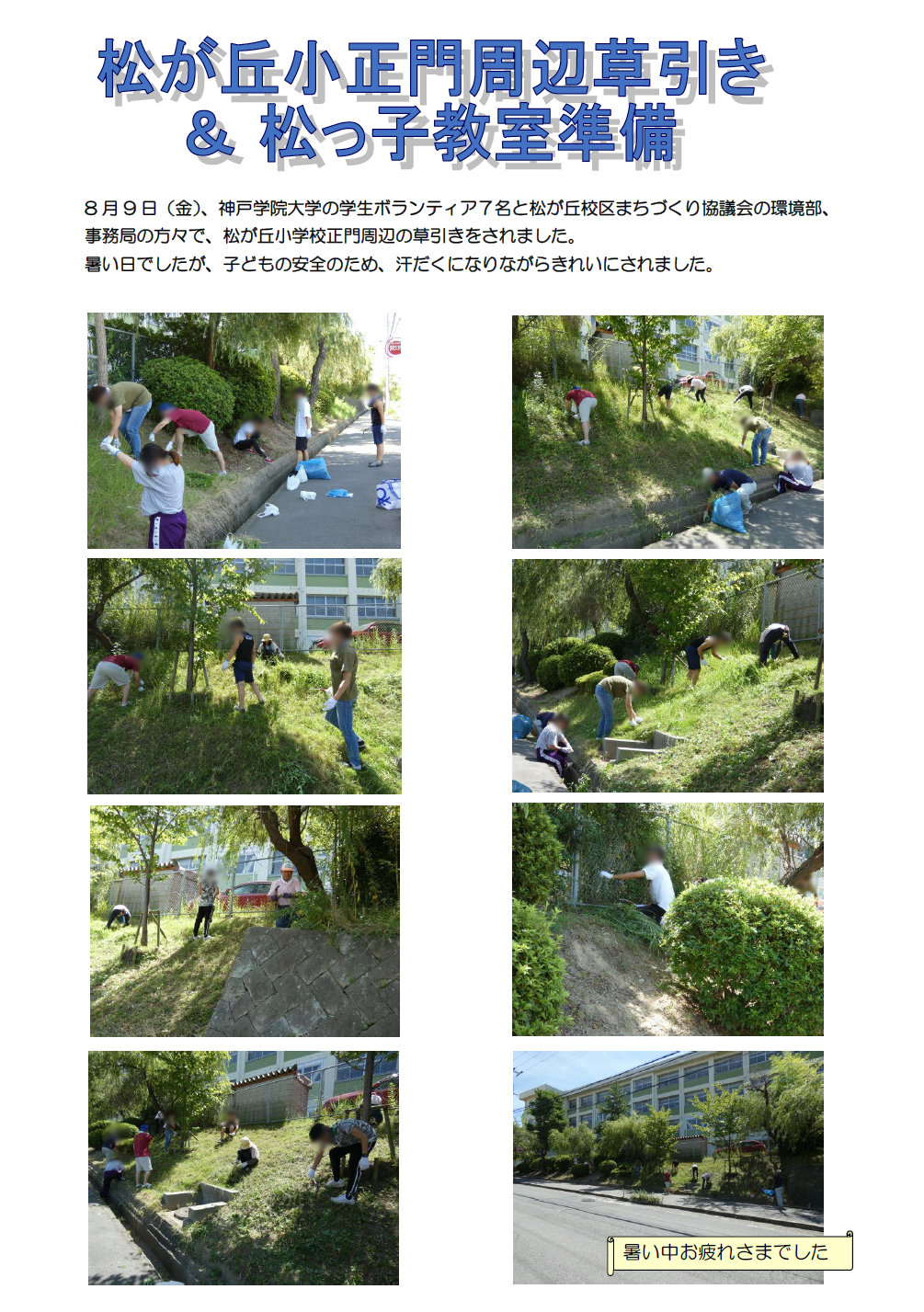 松が丘小の正門周辺草引き
