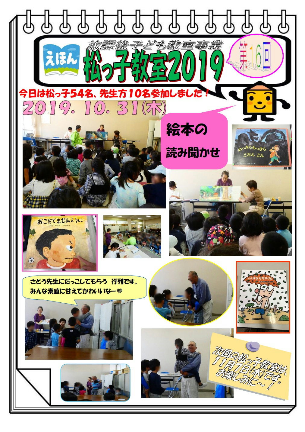松っ子教室2019 第12回から第16回まで 投稿日 2019年11月3日 著者 matsugaoka カテゴリー 松っ子教室 10月に行われた松っ子教室2019第12回から第16回の活動内容をご紹介します【写真の転載禁止】