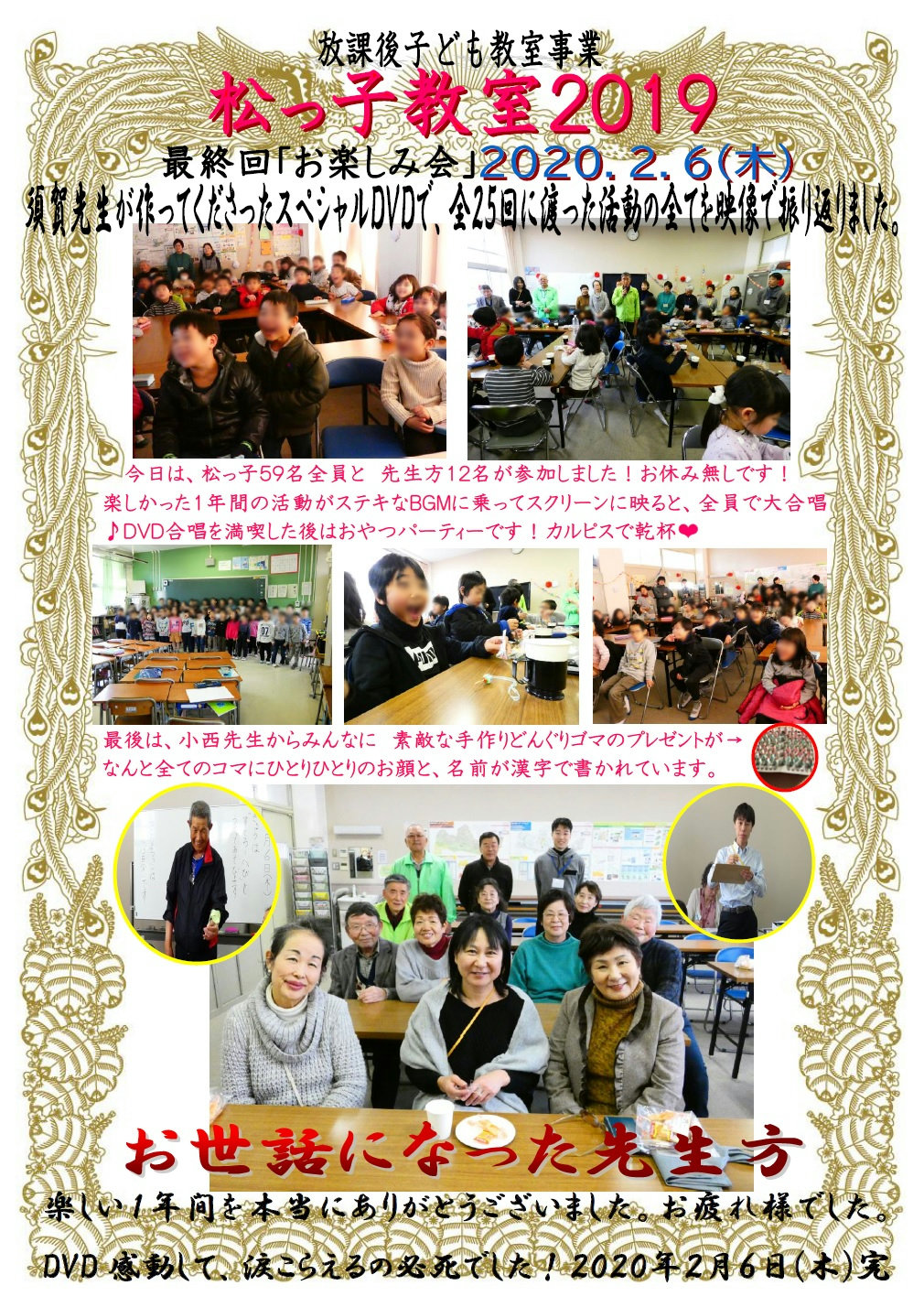 松っ子教室2019 第22回から第25回 投稿日 2020年2月13日 著者 matsugaoka カテゴリー 松っ子教室 1月から2月に行われた松っ子教室2019第22回から第25回の活動内容をご紹介します【写真の転載禁止】