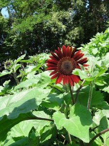 今年の夏、松が丘ふれあいガーデンでは、なんとも珍しい赤いひまわりがご覧いただけます。