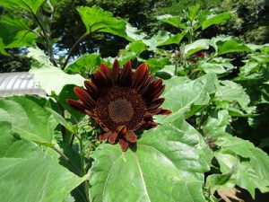 今年の夏、松が丘ふれあいガーデンでは、なんとも珍しい赤いひまわりがご覧いただけます。