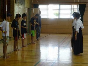 体育館ではSC21松が丘によるスポーツ体験があり、なぎなた、バレー、卓球、バドミントン、ミニバスの体験を楽しまれる方もいます。