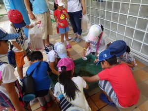 先生企画、ビオトープのめだかすくいは、金魚と違い捕まえるのが難しそうです。