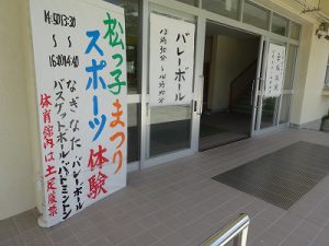 体育館ではSC21松が丘によるスポーツ体験があり、なぎなた、バレー、卓球、バドミントン、ミニバスの体験を楽しまれる方もいます。