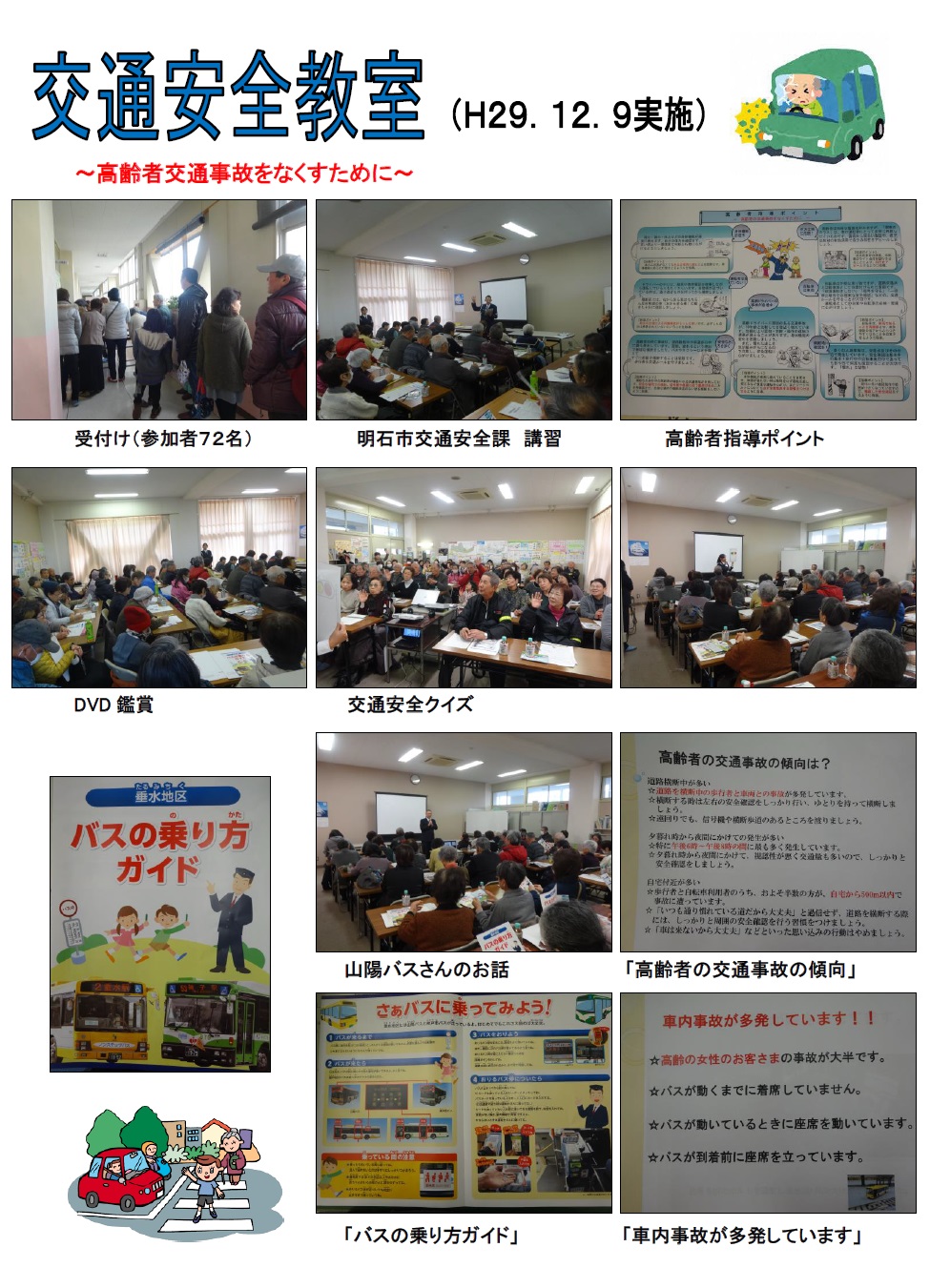 12月9日(土)、市交通安全課、山陽バスさんより講師の方をお迎えして、高齢者の交通事故をなくすためのお話を中心に、講習をしていただきました。