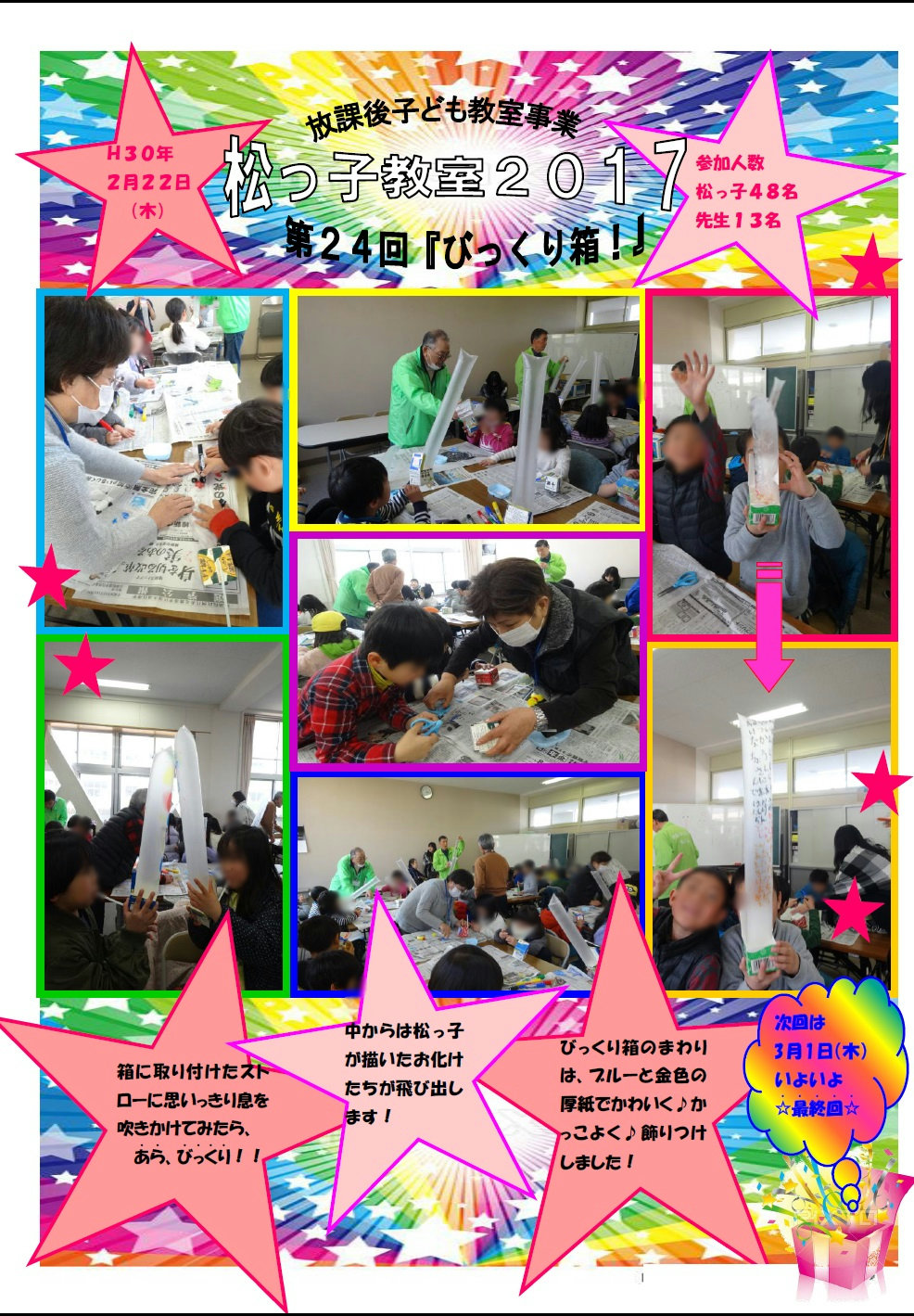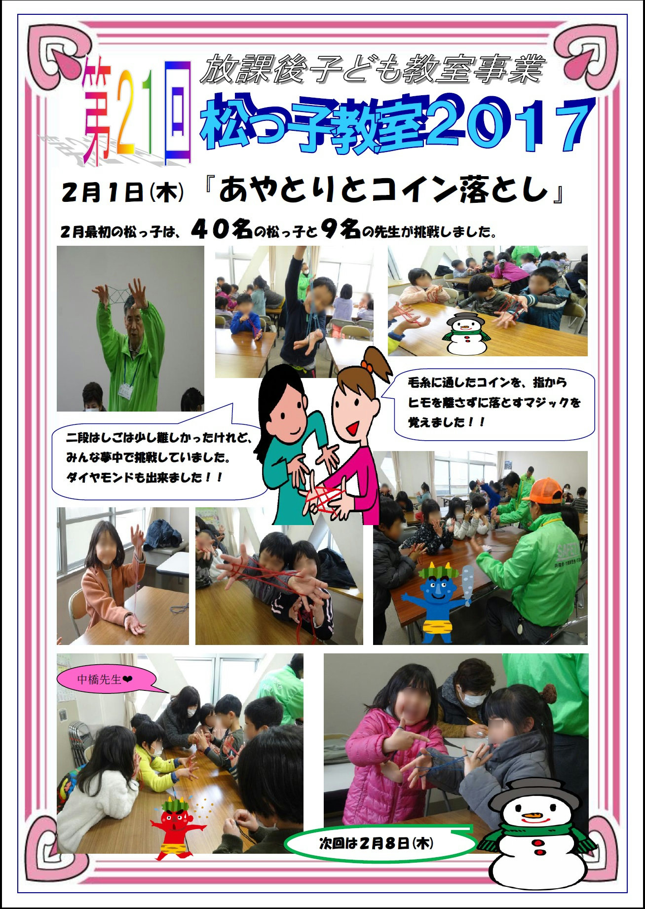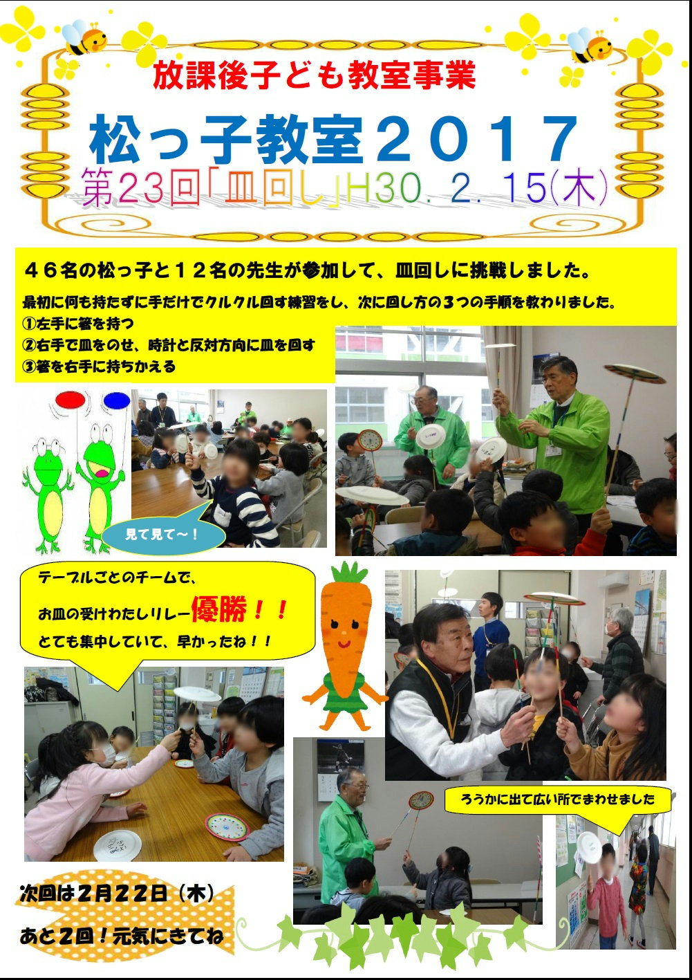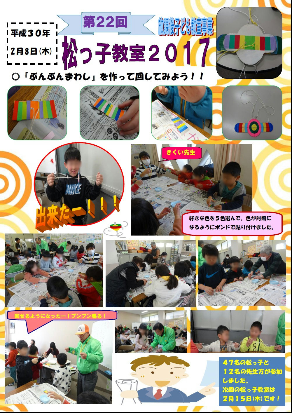 松っ子教室2017 第21回から第24回 投稿日 2018年2月23日 著者 matsugaoka カテゴリー 未分類 2月に行った松っ子教室2017の第21回から第24回までの活動内容をご紹介します。【写真の転載禁止】