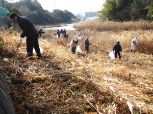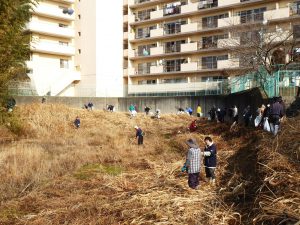 ・明石市の関係者、林農会や近隣農家・住民等の皆様の協力も得て、枯れ草の刈り取りやゴミ類の撤去などを行いました。