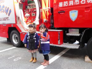 また屋外では、防火服をまとった「ちびっ子消防士」の記念写真撮影会も…。