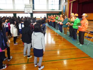 「オレンジキャップお礼の会」が、3月6日(火)、和坂小学校体育館にて開催されました。