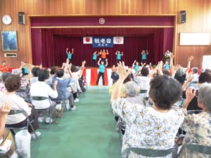 休憩を挟んで、プナハナシスターズによるフラダンスに始まり、若葉会による黒田節や相馬盆唄等の新舞踊を楽しませていただきました。続いてSC21和坂によるリズムに合わせた3B体操に加えて参加者も身体を動かして楽しめる体操も行っていただき、すっきりした気分で散会となりました。