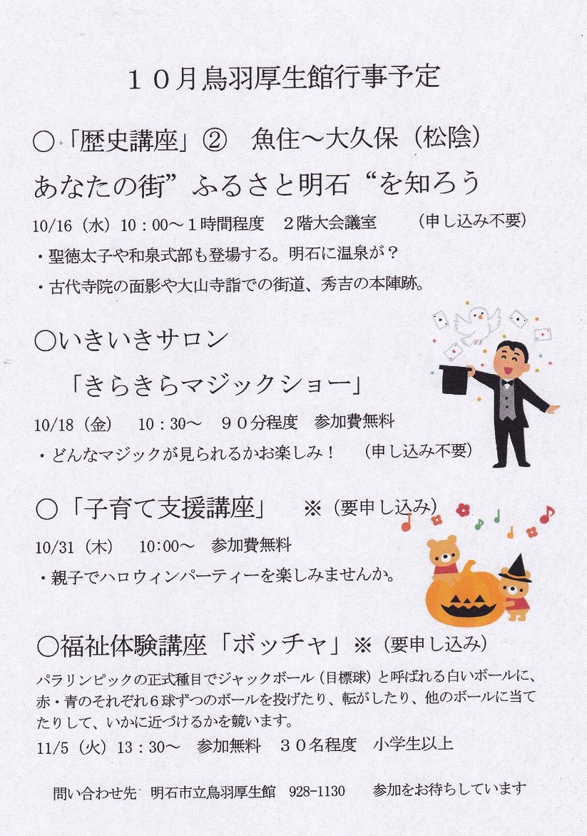 10月 鳥羽厚生館 行事予定