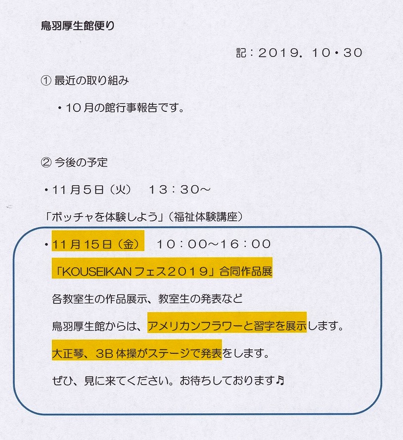 鳥羽厚生館便り(最近の取り組み・今後の予定)
