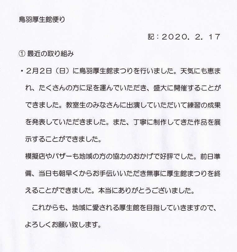 鳥羽厚生館便り 「令和元年度 鳥羽厚生館まつり」