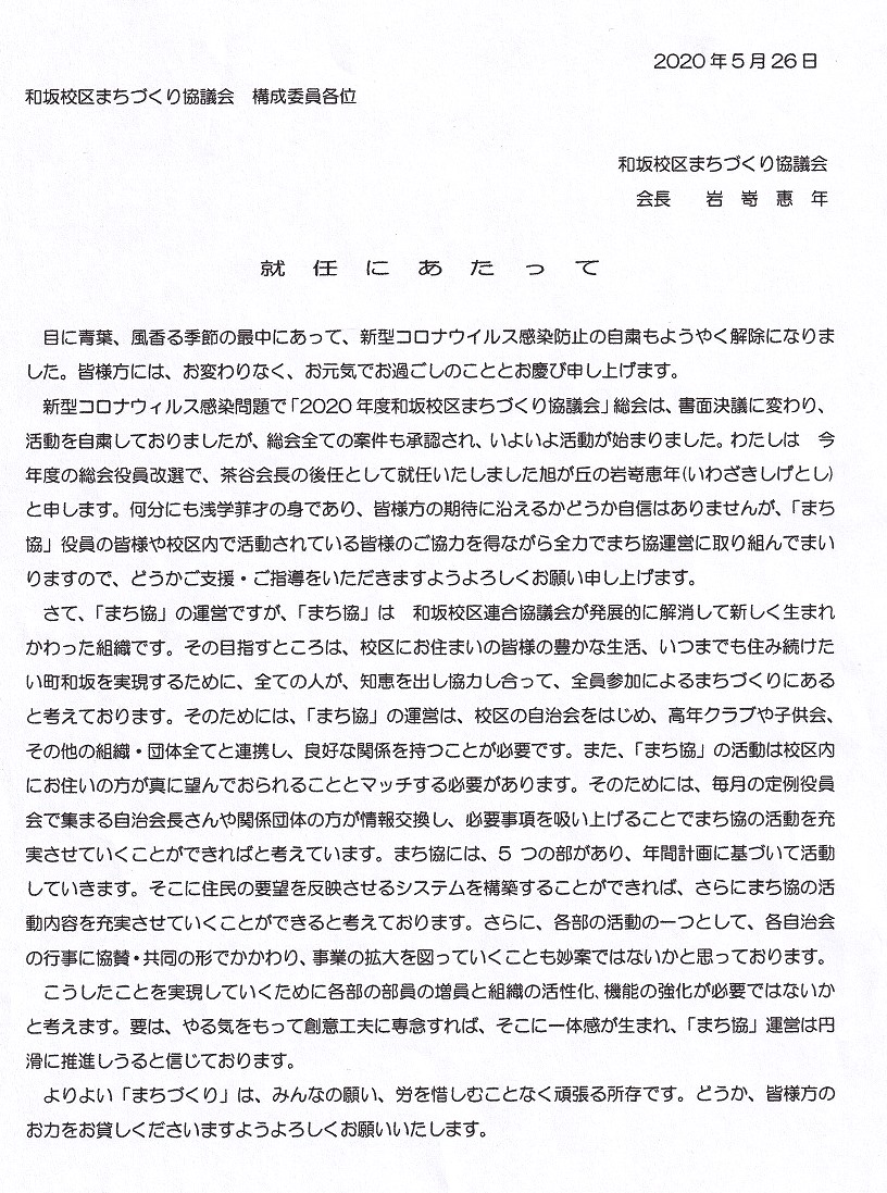 就任にあたって ( 会長 岩嵜 惠年 )