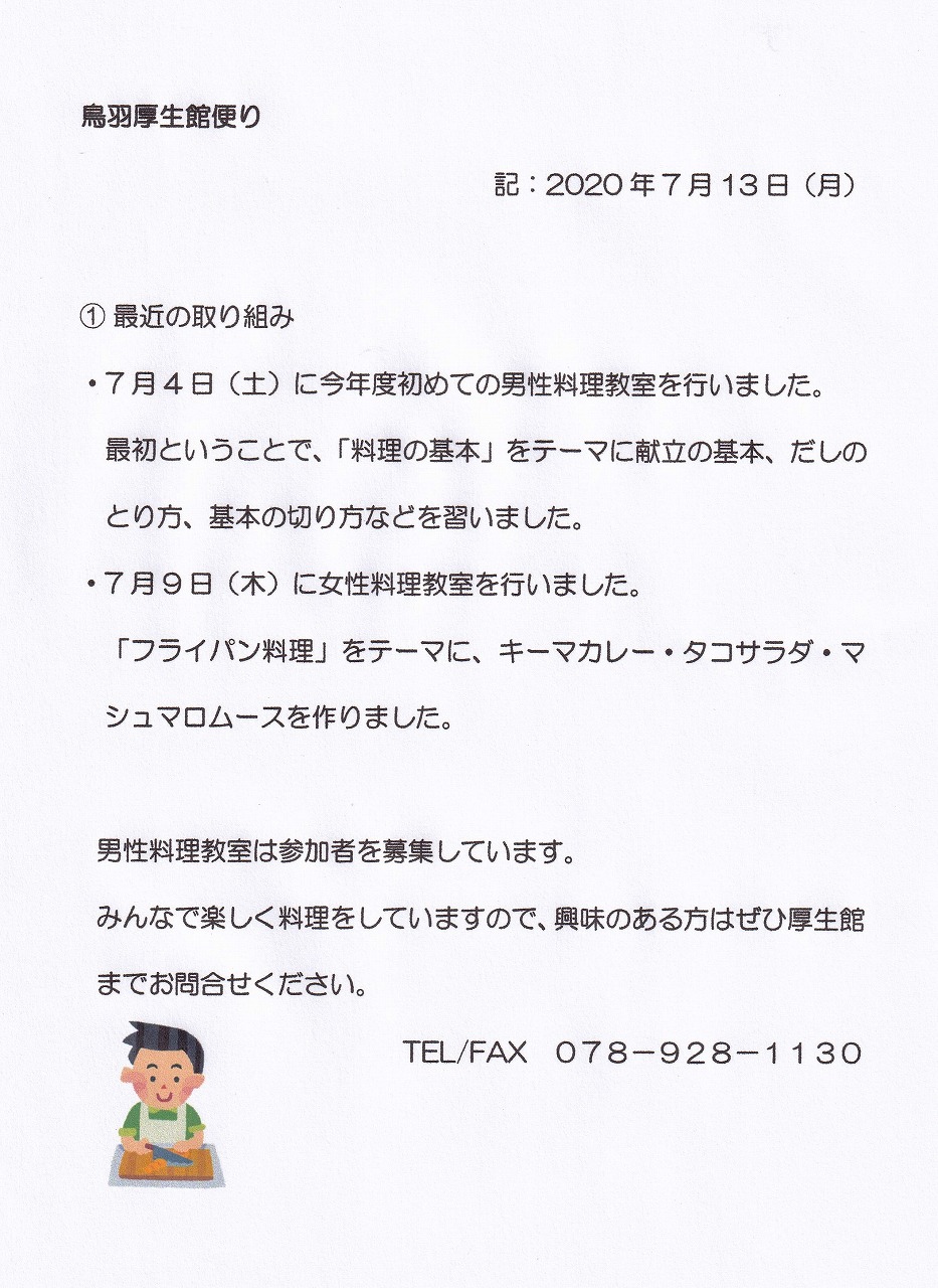 鳥羽厚生館便り「男性料理教室・女性料理教室」