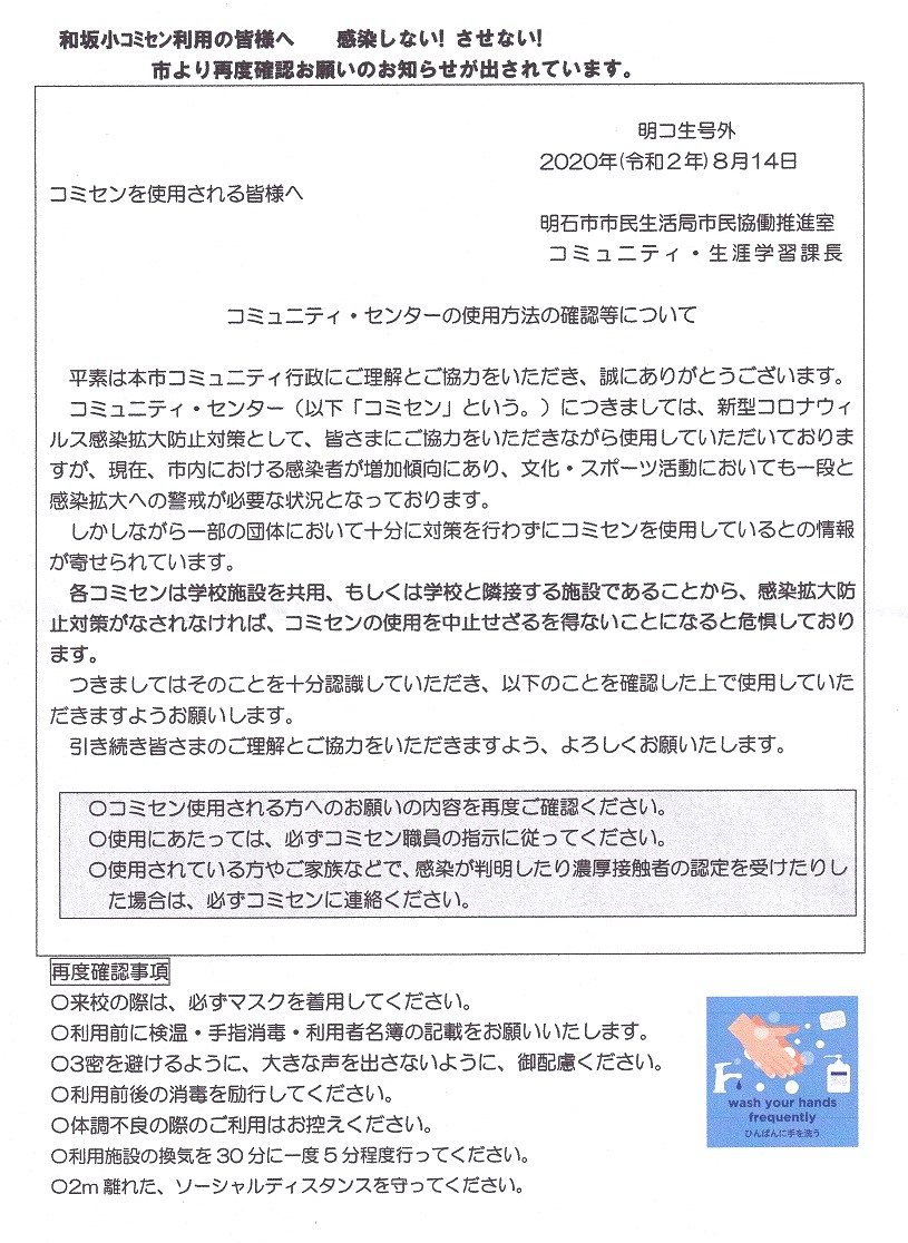 コミセンを利用される皆様へ(コロナ感染対応)