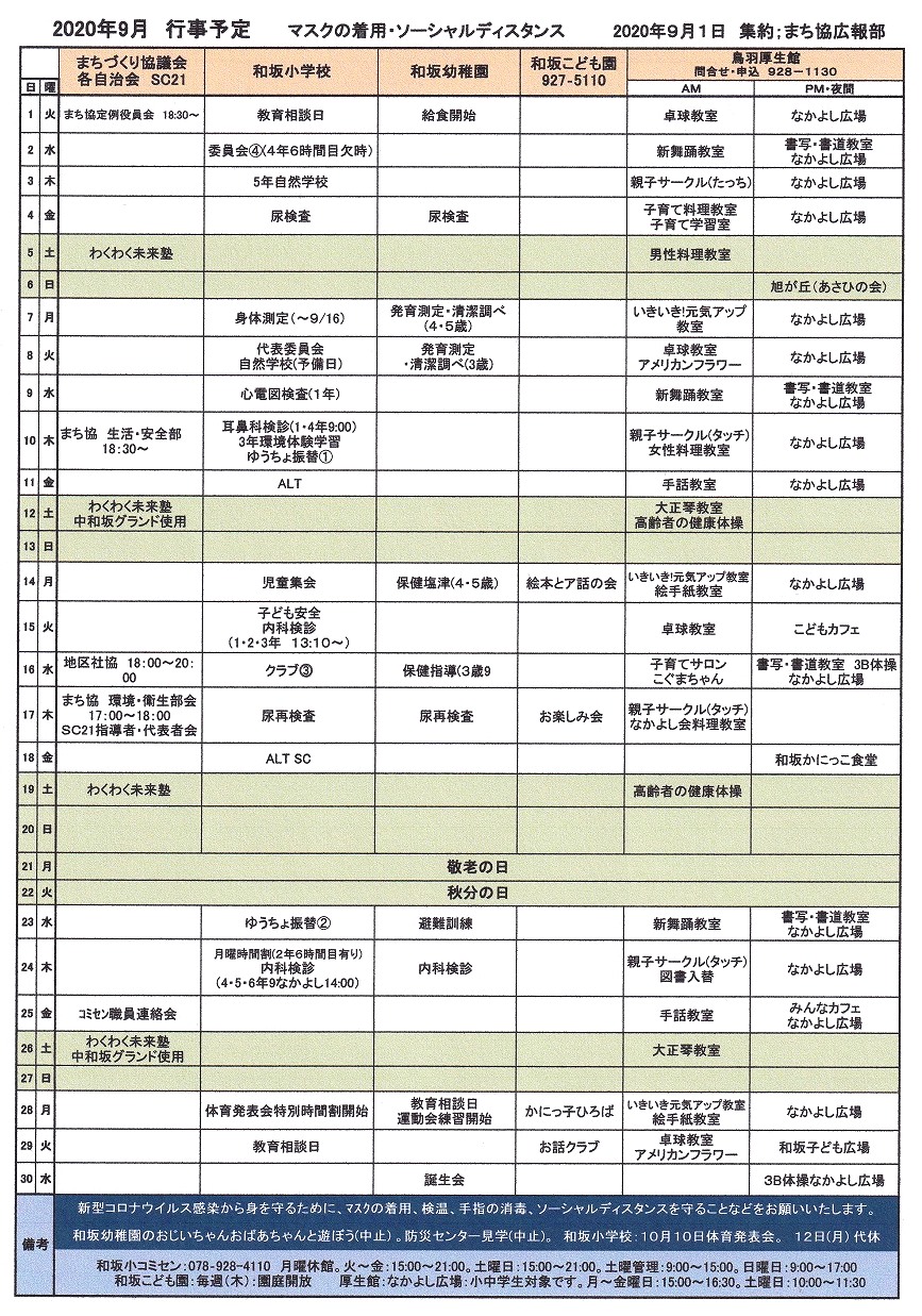 和坂校区まちづくり協議会 関係団体行事日程(9月度)