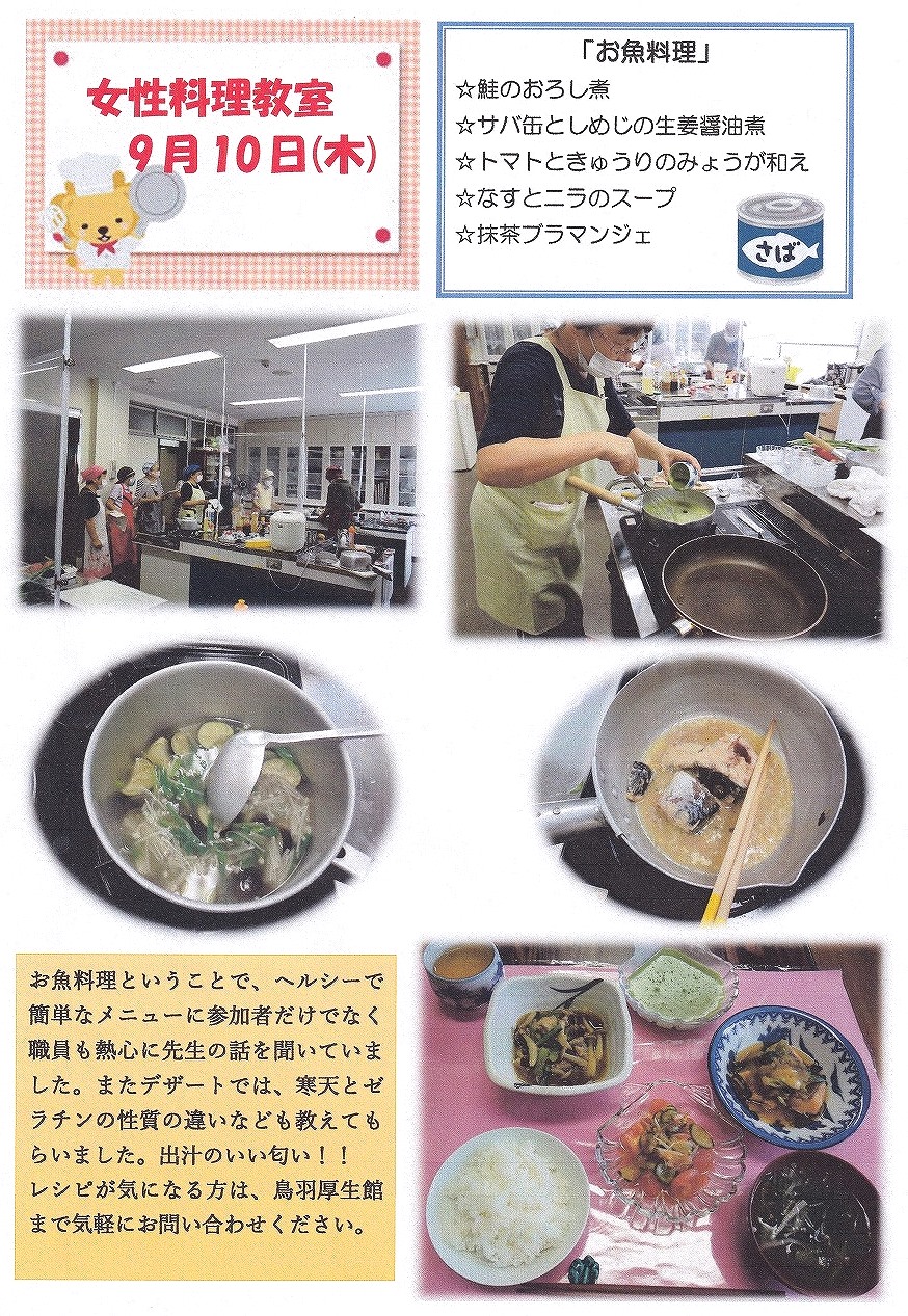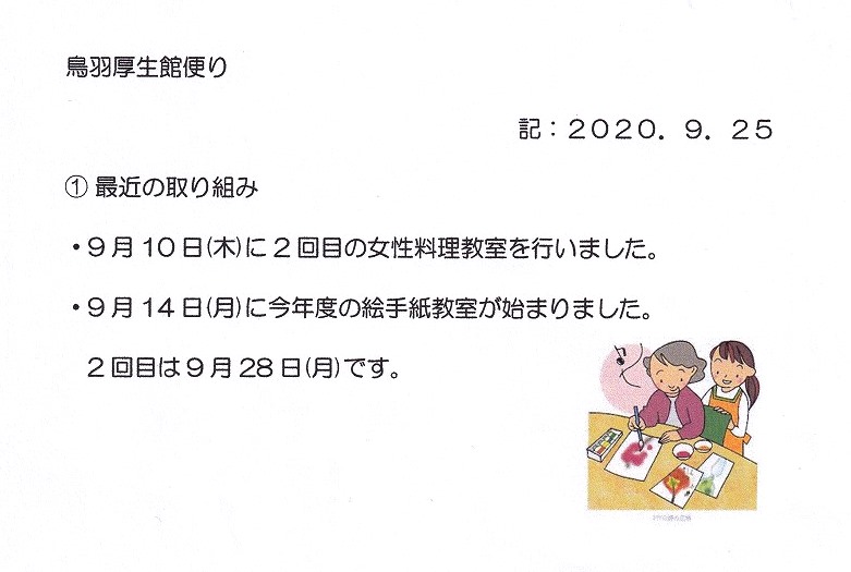 鳥羽厚生館便り「女性料理教室」「絵手紙教室」