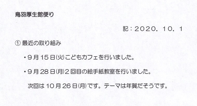 鳥羽厚生館便り「こどもカフェ」「絵手紙教室」