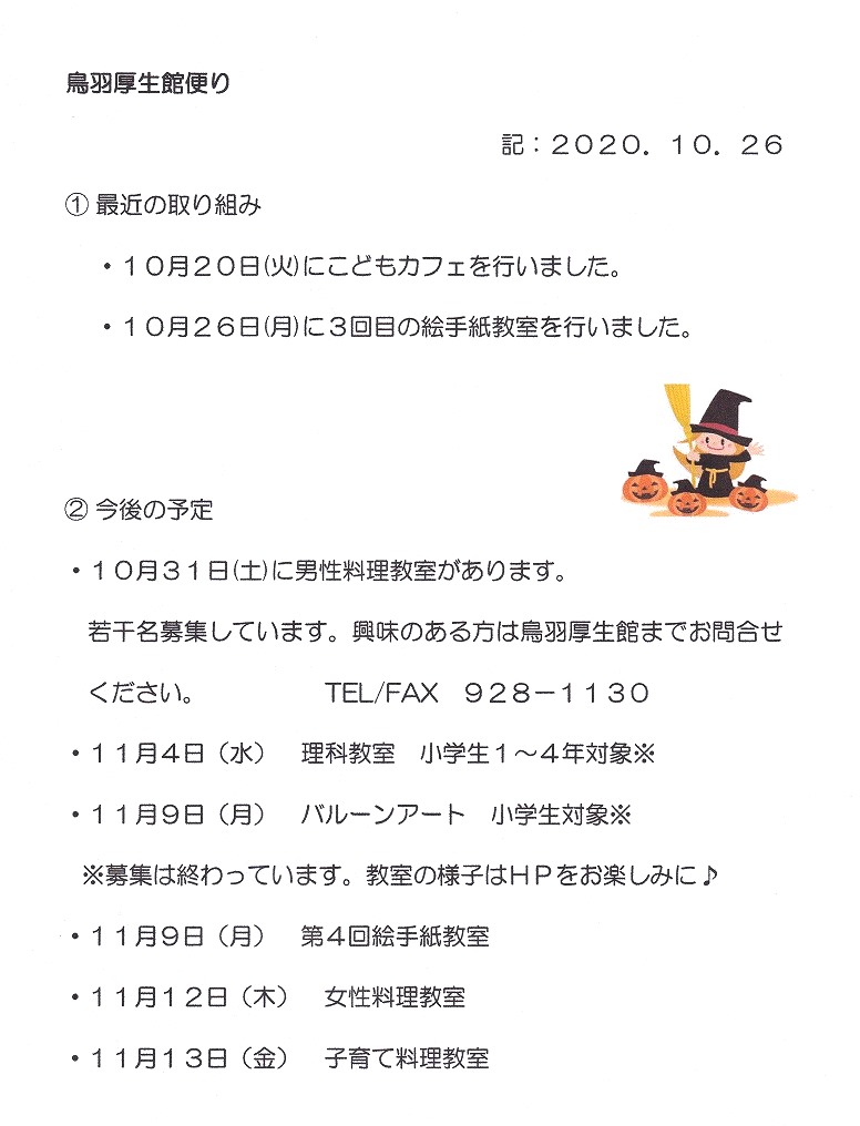 鳥羽厚生館便り「こどもカフェ」「絵手紙教室」