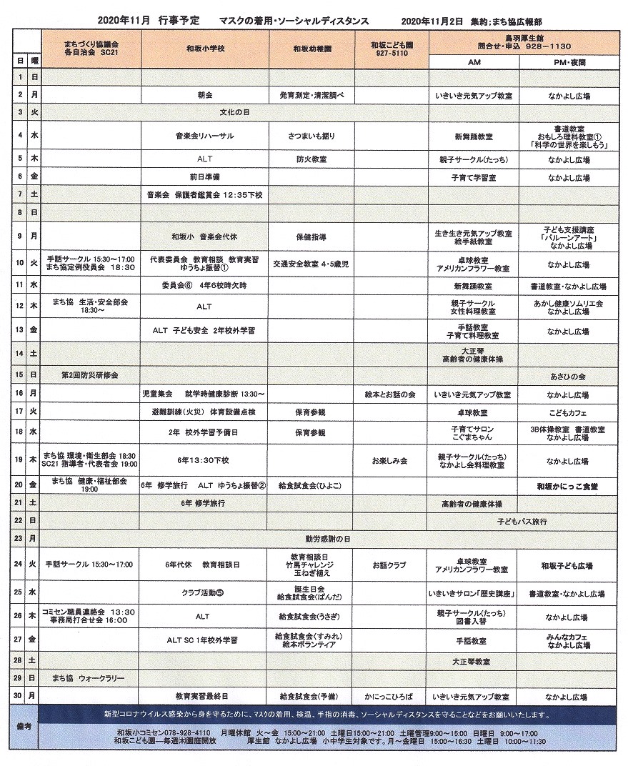和坂校区まちづくり協議会 関係団体行事日程(11月度)