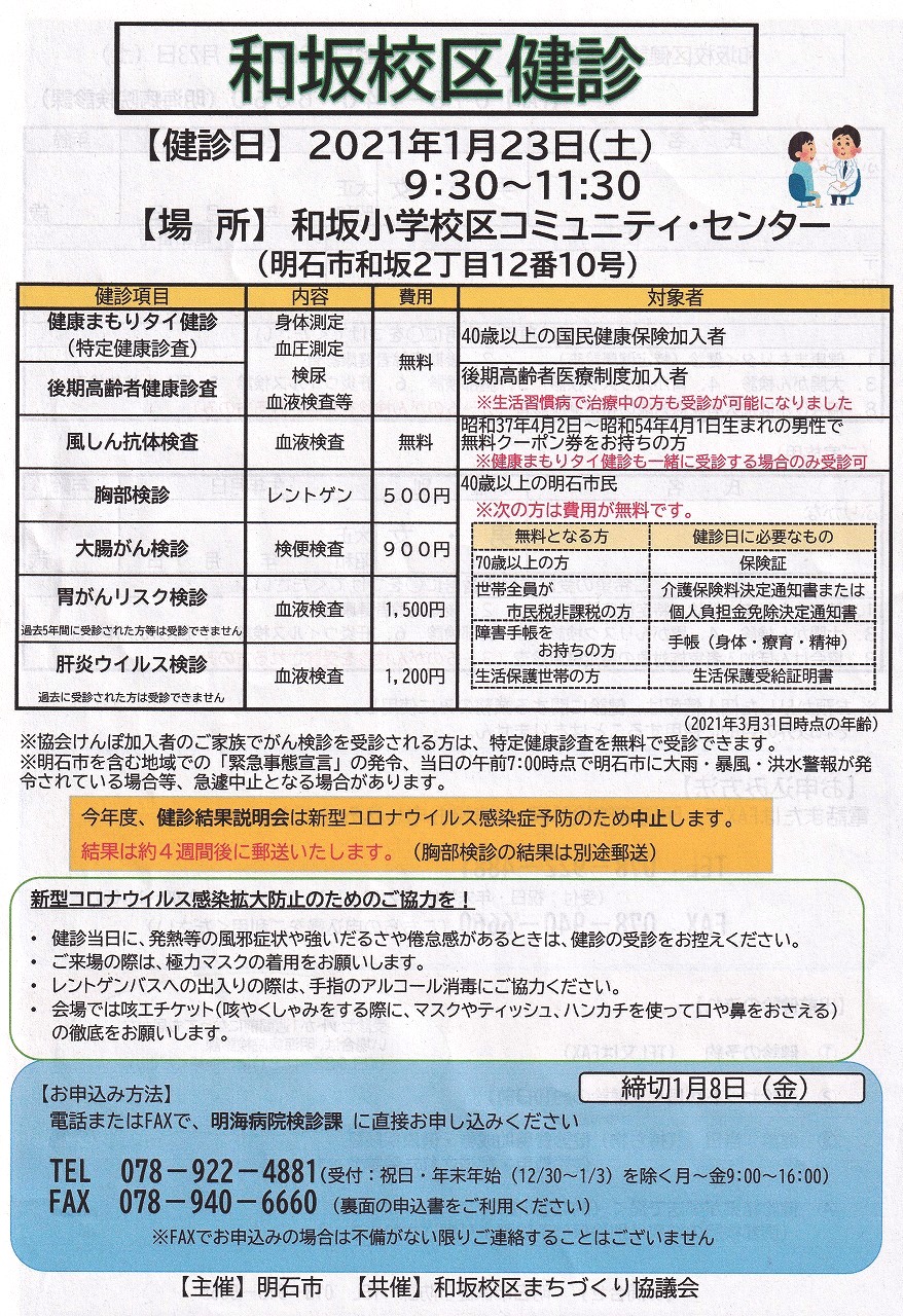 「和坂校区健診」 2021年1月23日