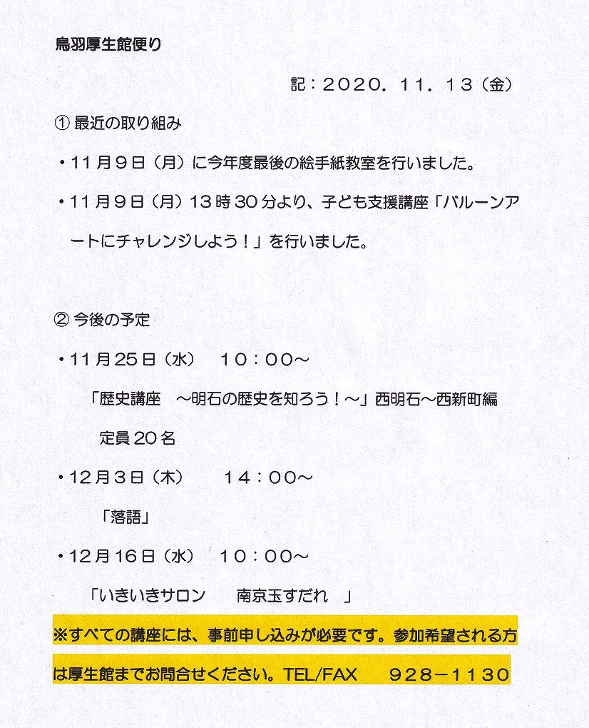 鳥羽厚生館便り「絵手紙教室」「バルーンアートにチャレンジしよう
