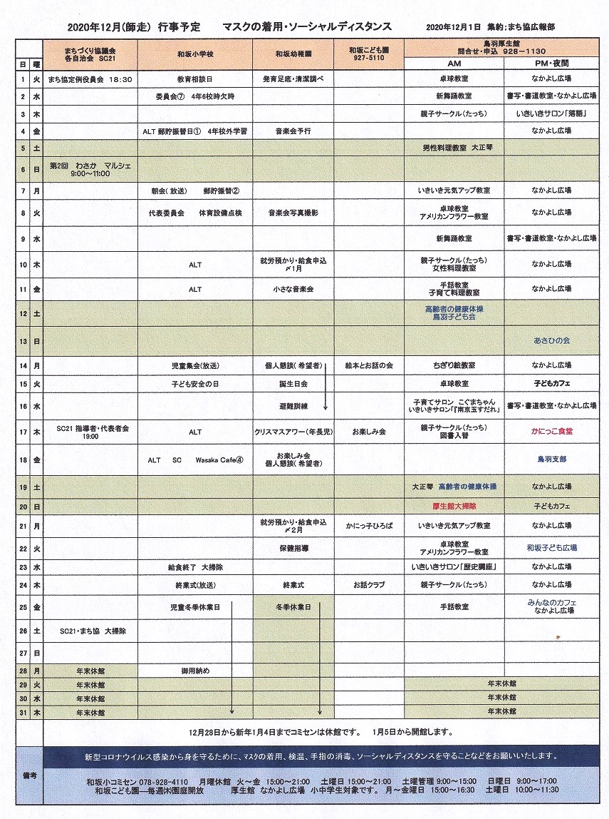 和坂校区まちづくり協議会 関係団体行事日程(12月度)