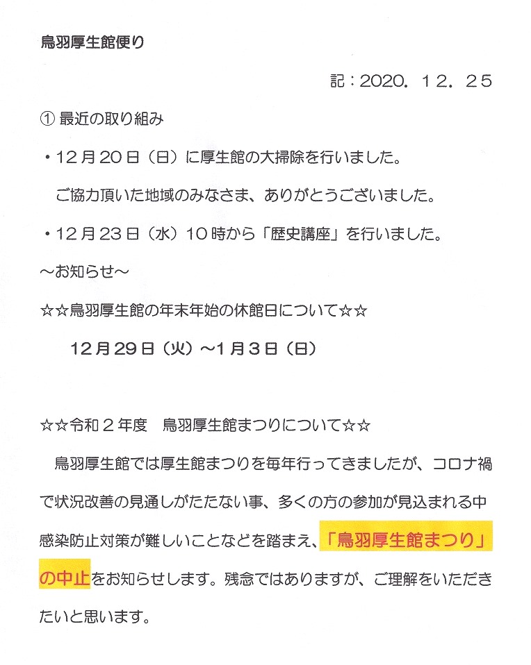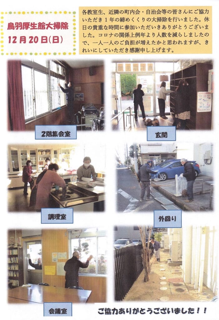 鳥羽厚生館便り「鳥羽厚生館大掃除」「歴史講座」
