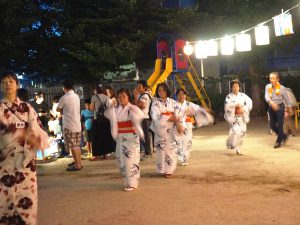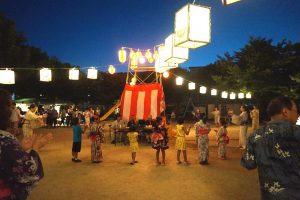 たくさんの方に係の仕事を分担していただきました。台風5号の接近で5日のみの開催でした。亡くなられた方のご冥福をお祈り、在りし日を偲び、今年も供養の盆踊りを開催しました。夜が更けるにつれて踊りの輪も大きくなりました。浴衣姿の子どもたちも踊りに加わり、住民が集い、みんなで楽しさを感じた盆踊りでした。住民の手作りの盆踊りか続いていってほしいです。