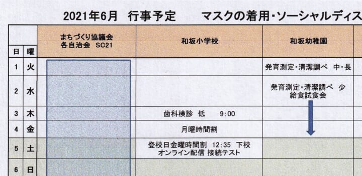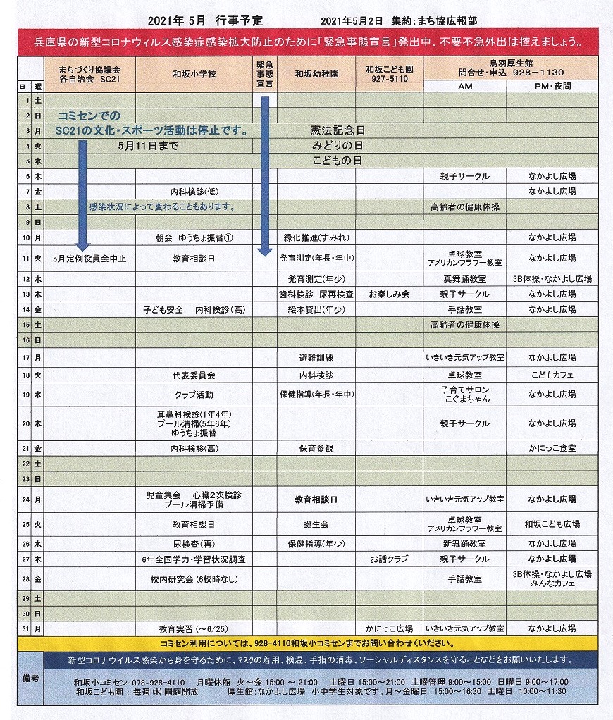 和坂校区まちづくり協議会 関係団体行事日程(2021年5月度)