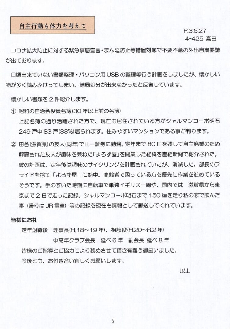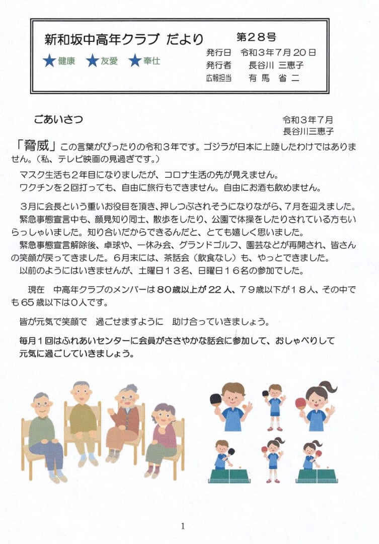 新和坂自治会 「中高年クラブだより」