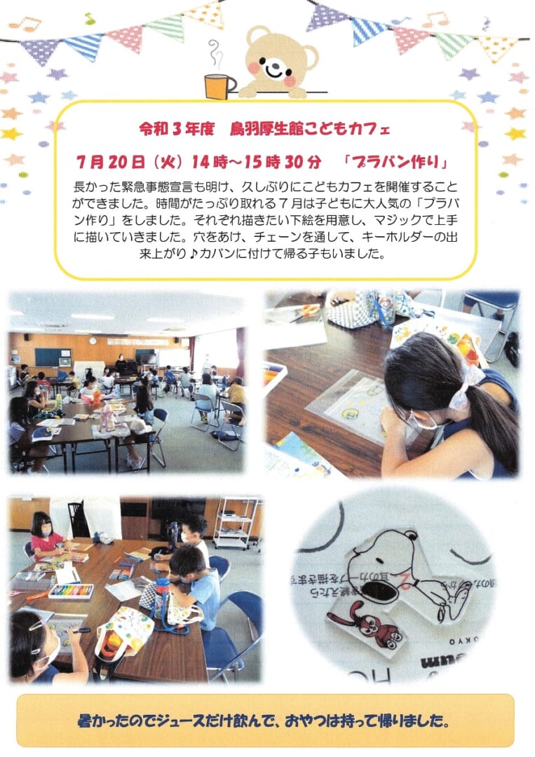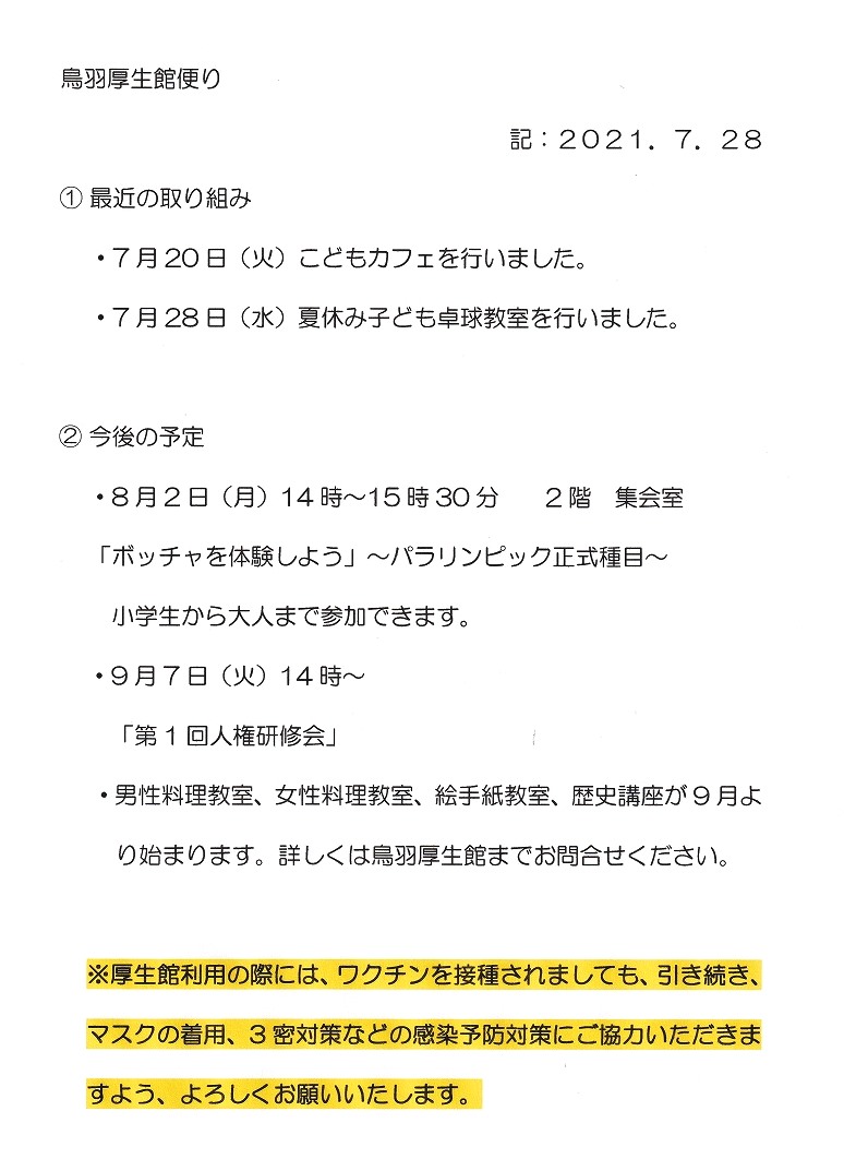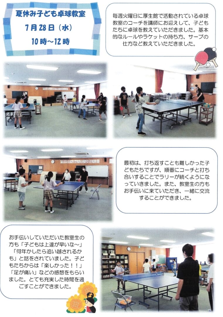 鳥羽厚生館便り「こどもカフェ」「夏休み子ども卓球教室」