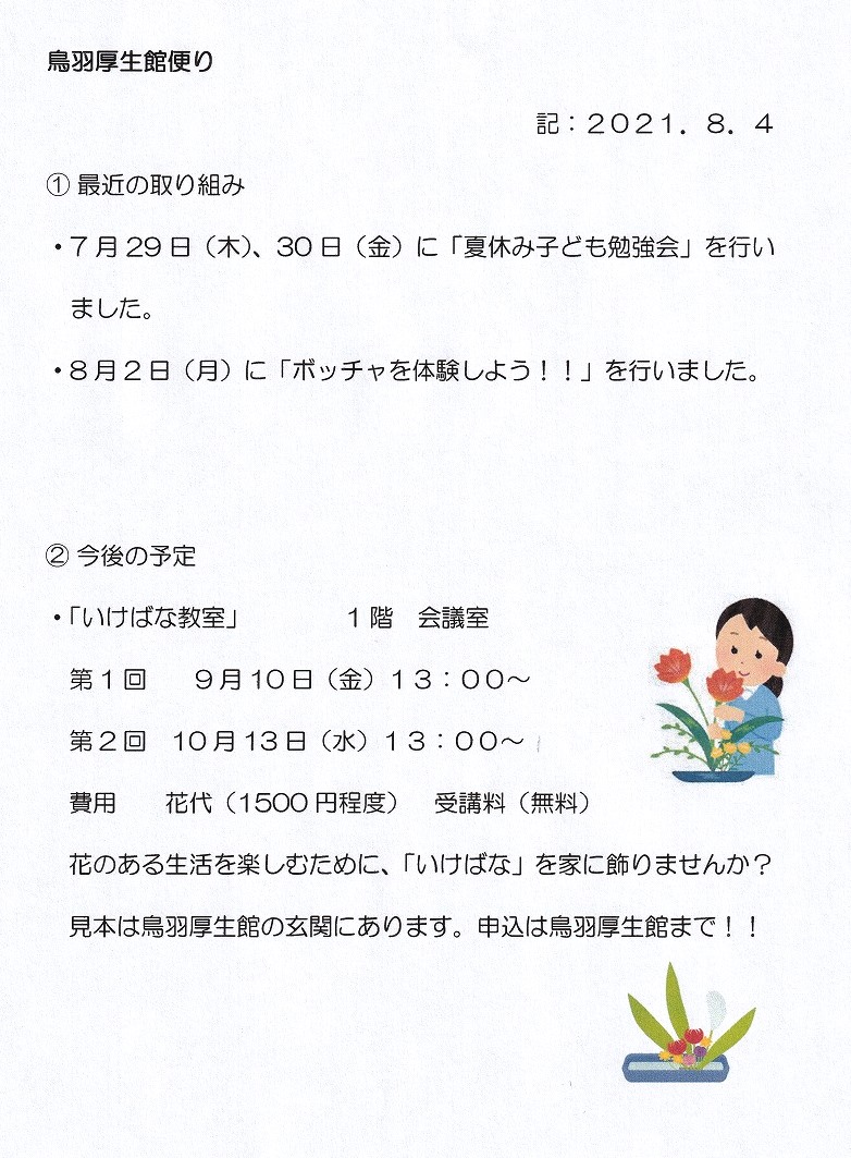 鳥羽厚生館便り「子ども勉強会」「ボッチャを体験しよう!!」