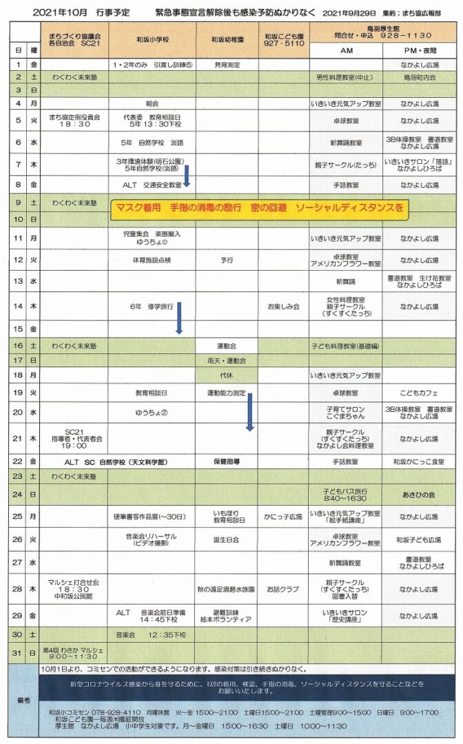 和坂校区まちづくり協議会 関係団体行事日程(2021年10月度)