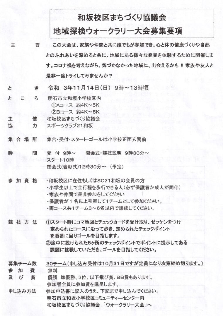 和坂校区まちづくり協議会「地域探検ウォークラリー大会」募集要項
