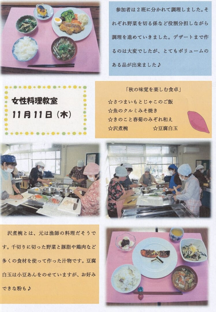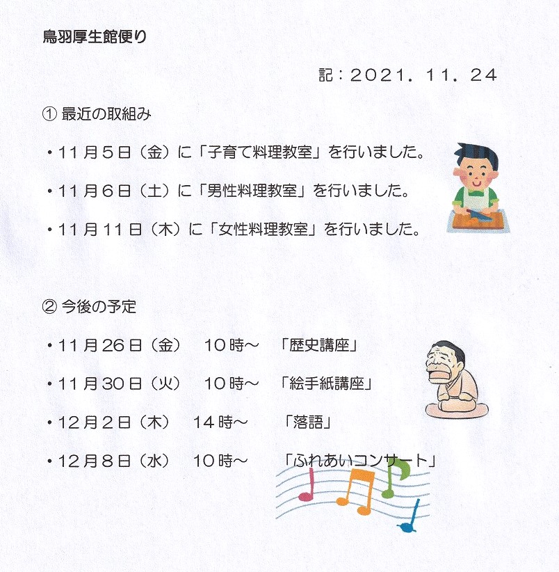 鳥羽厚生館便り 「子育て料理教室、男性料理教室、女性料理教室」