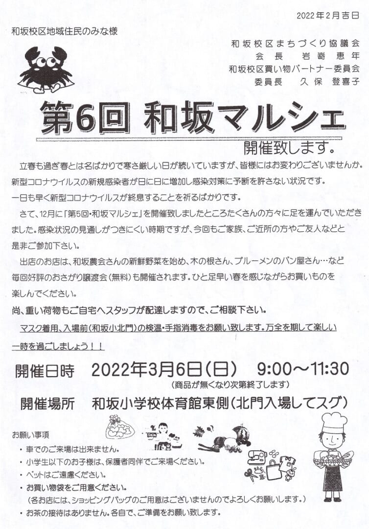 第6回「和坂マルシェ」を、3月6日に開催します。