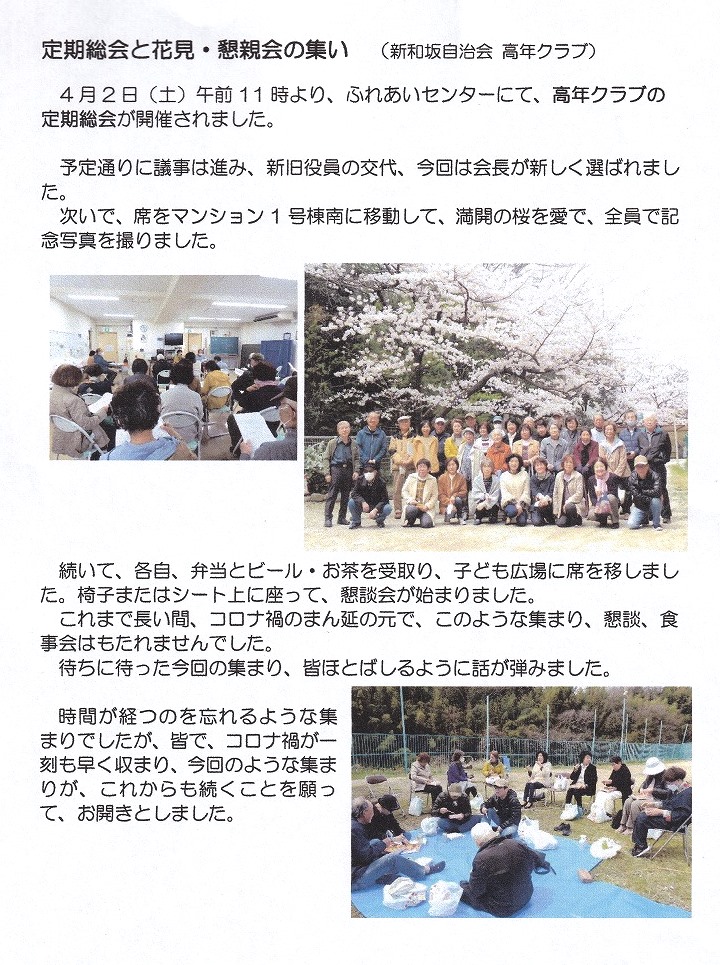 定期総会と花見・懇親会の集い (新和坂自治会 高年クラブ)